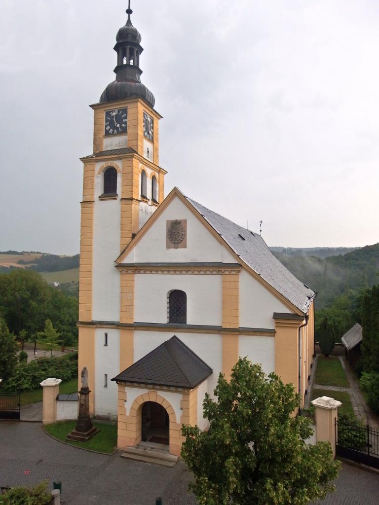 Na konci 16. století jej nechal vystavět tehdejší majitel hradeckého panství Kašpar Pruskovský. Kostel je trojlodní stavbou v klasicistním stylu. 37 metrů vysoká kostelní věž ukrývá tři zvony, které jsou nejstarší na Opavsku.
